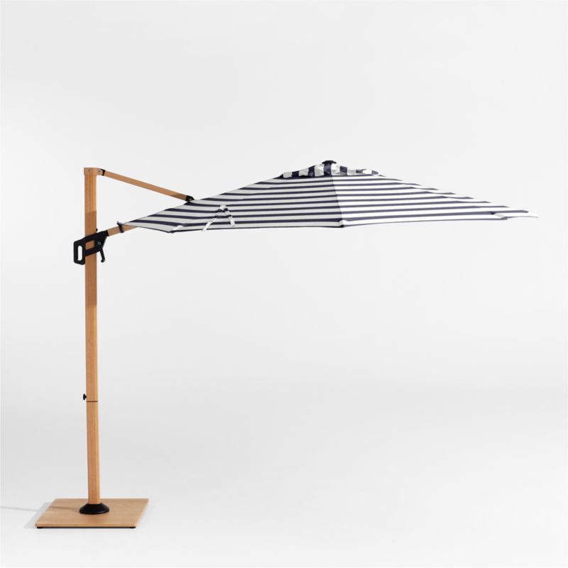 • 10' Round Navy and White Cabana Stripe Sunbrella® Cantilever Outdoor Patio Umbrella with Faux Wood Metal Frame