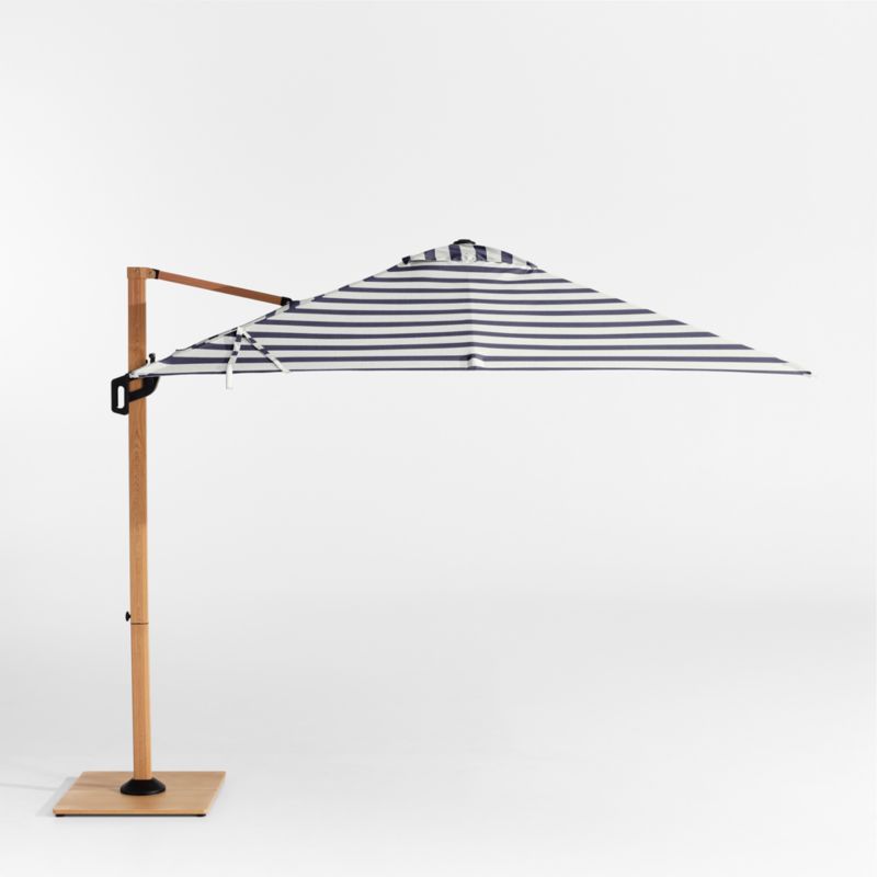 • View 9' Square Navy and White Cabana Stripe Sunbrella® Cantilever Outdoor Patio Umbrella with Faux Wood Metal Frame - image 3 of 6