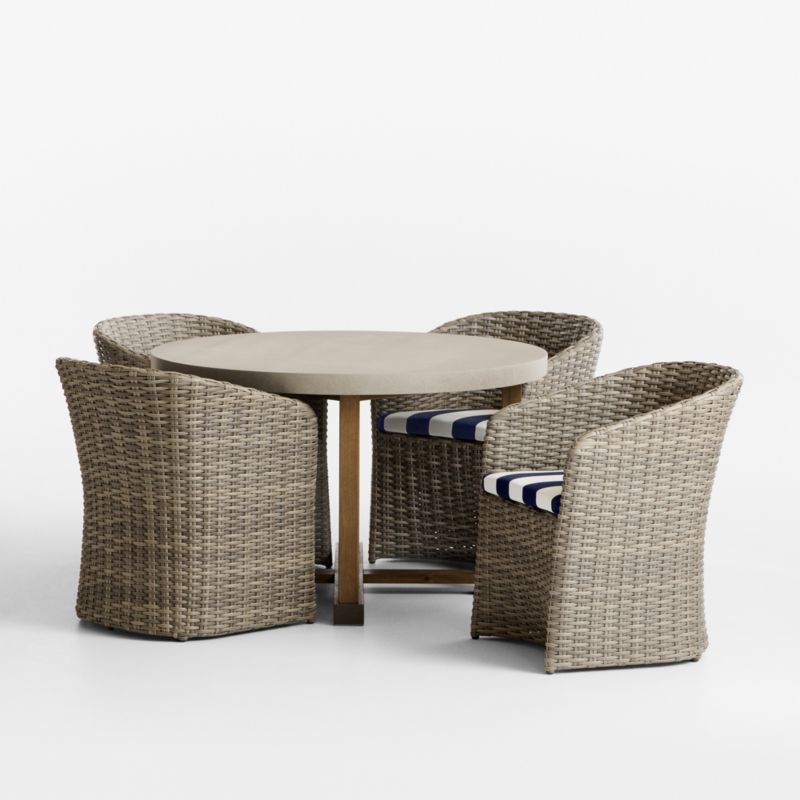 Abaco 48" Grey Wood Outdoor Dining Set with Navy and White Cabana Stripe Sunbrella ® Cushions