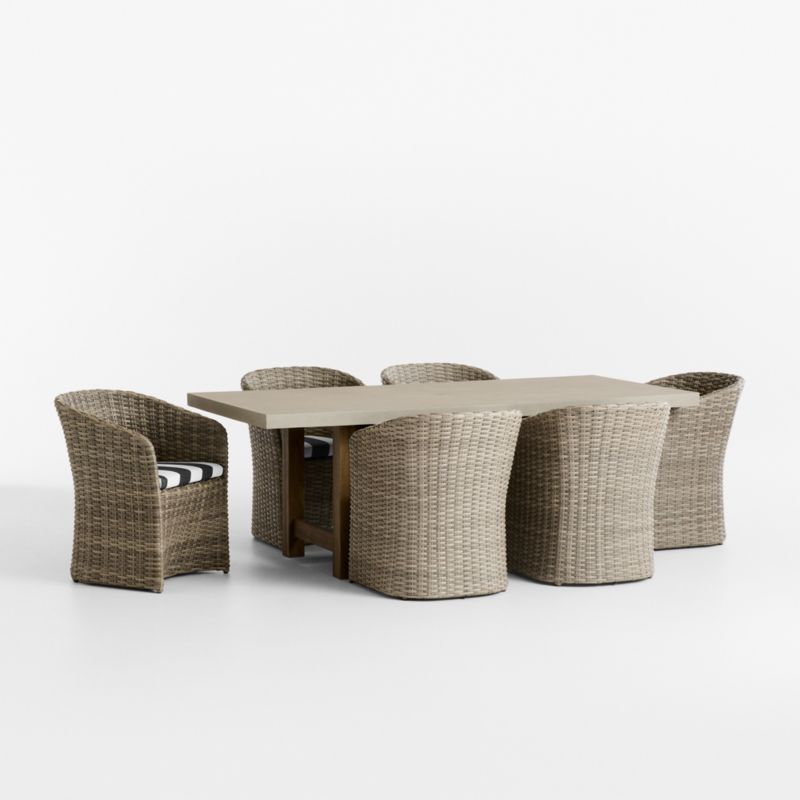 Abaco 84" Grey Wood Outdoor Dining Set with Black and White Cabana Stripe Sunbrella ® Cushions