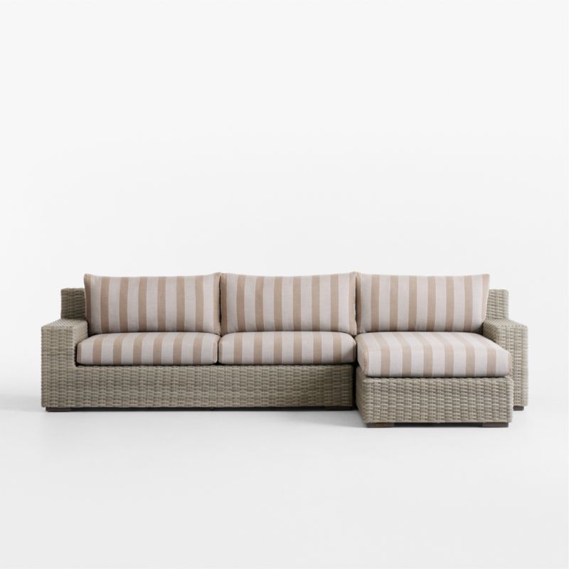 Abaco Resin Wicker 2-Piece Right-Arm Chaise Outdoor Sectional Sofa with Range Dune Stripe Sunbrella ® Cushions