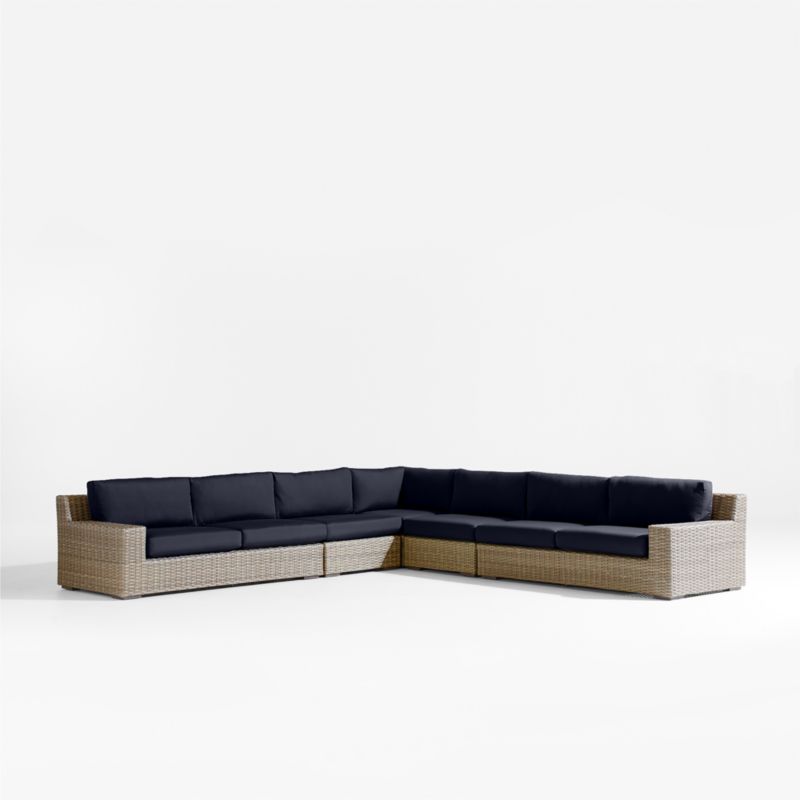 Abaco Resin Wicker 5-Piece L-Shaped Outdoor Sectional Sofa with Canvas Navy Sunbrella ยฎ Cushions31.75"Hheight143.25"Wwidth143.25"DdepthMeasurements are in inches.80.64Hheight363.86Wwidth363.86DdepthcmMeasurements are in centimeters.