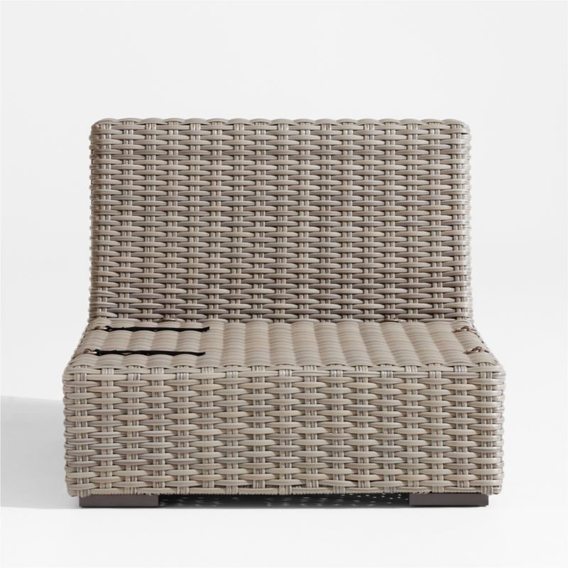 Low-slung and ready to lounge, our Abaco outdoor sectional collection extends an invitation to kick back and relax. Each corner chair is handwoven in grey-brown, weather-resistant resin wicker in a chunky, textural weave. The chair's modern, boldly proportioned frame of lightweight aluminum offers a deep seat. Add on a layer of comfort with custom-designed cushions in a range of colors (sold separately). The corner chair combines with other Abaco sectional components to fashion outdoor seating tailored to your great outdoors.