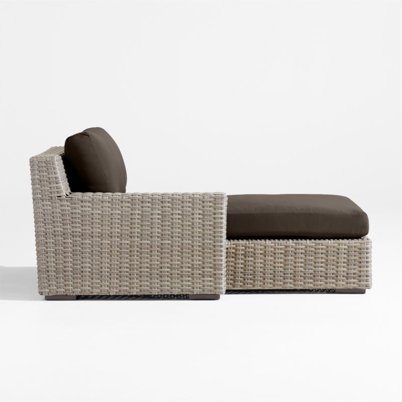 Abaco Resin Wicker Left-Arm Outdoor Chaise Lounge with Canvas Java Sunbrella ยฎ Cushions
