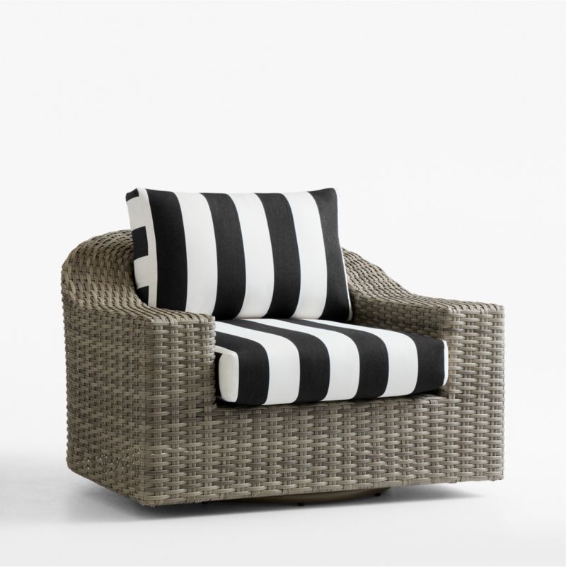 Abaco Resin Wicker Outdoor Swivel Lounge Chair with Black and White Cabana Stripe Sunbrella ® Cushions