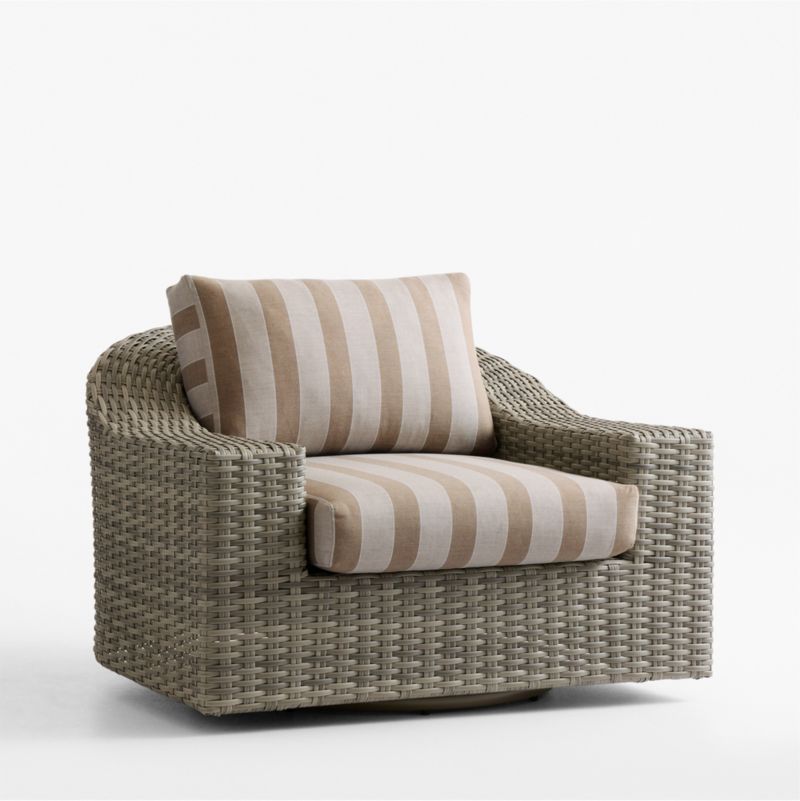 Abaco Resin Wicker Outdoor Swivel Lounge Chair with Range Dune Stripe Sunbrella ® Cushions