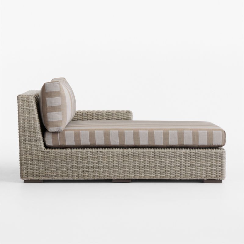 Abaco Resin Wicker Right-Arm Outdoor Chaise Lounge with Range Dune Stripe Sunbrella ® Cushions