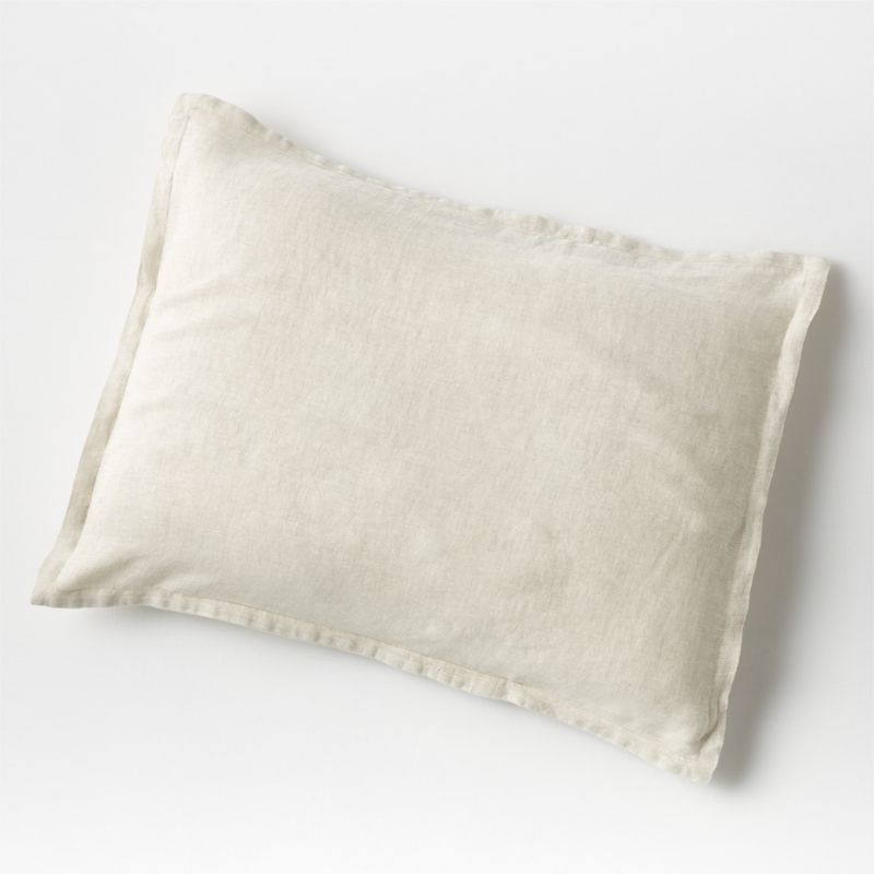 Our pure linen bedding creates a nighttime oasis. Woven of 100% linen in a warm, natural hue and finished with flange tailoring, this airy and breathable chambray sham makes the bed with a dreamy, laid-back look. Our durable and luxurious linen pillow sham is a Crate & Barrel exclusive.