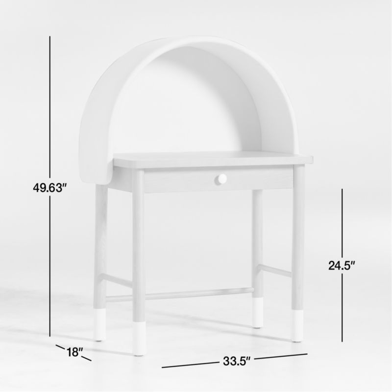 Designed to pair with the Aksel kids desk, this arch-shaped hutch provides a sheltering bulletin board for notes, pictures or a favorite art project. The corkboard back panel and sides are covered in white cotton canvas to keep the look clean, simple and thoroughly modern. Combine with the Aksel desk and bookcase, for a streamlined space that works hard while looking good.