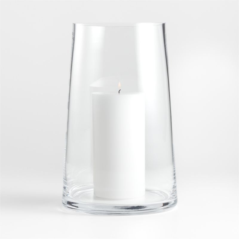 Transform a simple pillar candle into a stunning display with our hand-blown glass hurricane. Crafted by highly skilled artisans, the tall hurricane tapers gently toward the top, framing the candle gracefully while protecting the flame from errant breezes. Group our exclusive large blown-glass candle holder with its smaller counterparts to create a sparkling centerpiece.