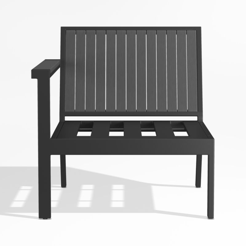 With its lightweight all-weather aluminum and airy slatted design, you can depend on Alfresco to withstand season after season (and trend after trend) of effortless outdoor living. Made for lounging, the sectional collection offers a wealth of options to suit outdoor spaces of any size. Durable materials finished in black shape this left-arm chair with clean lines and a wide armrest that offers a perch for your drink or snack. Layer on lounge-worthy comfort with the coordinating cushions, sold separately.