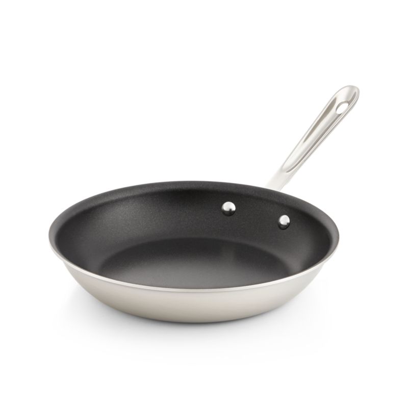 Offering maximum efficiency through modern technology, the d5 line from All-Clad bonds five distinct layers in a perfect harmony of cooking performance. The pan features a patented, three-layer aluminum and steel core that propels heat sideways, eliminating hot spots and driving through the entire pan, not just the base. Designed for cooking at higher heat with oil to create full flavor, color and crispy texture, the pan also feature three layers of PFOA-free nonstick coating to ensure effortless food release and easy cleanup. The pan is designed with flared sides for easy pouring and riveted stainless steel handles for comfortable maneuvering.