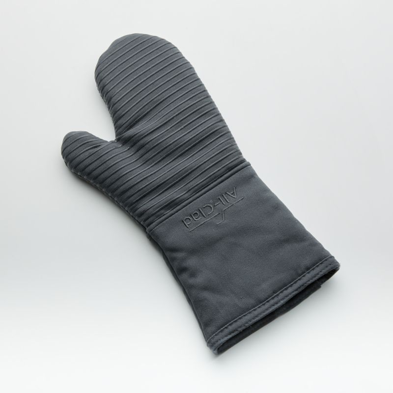 Embroidered stripes and a silicone finish provide a sturdy grip on hot pots, pans and plates. Protect your hands as you cook and bake with this set cotton oven mitt in deep pewter grey. The elongated construction also shields forearms from hot oven racks and other pots on the stove. For coordinated cooking, pair with the matching pot holder.