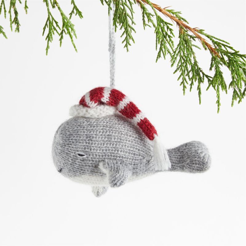 Artisanal and downright delightful, our whale Christmas ornament is handknit from super-soft alpaca-blend yarn. This adorable grey whale dons a red-and-white striped stocking cap to keep off winter's chill. Part of our exclusive alpaca tree decoration collection, the whale ornament makes up a charming menagerie along with its companion snowman and animal ornaments.