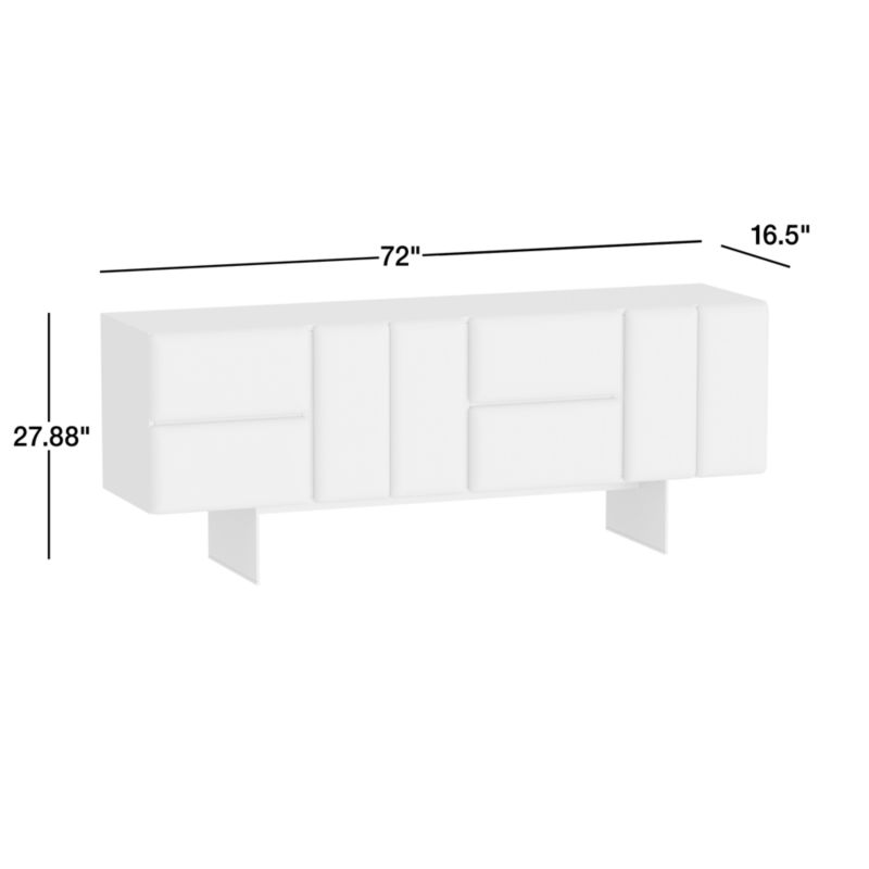 Pillowed shapes bring organic softness to Ameno's striking linear profile. The media console's rhythmic facade alternates stacked drawers with double doors, all rounded at the edges to add dimensional interest. Blackened patina metal panel legs add an industrial edge while lightening the footprint. Push-open and soft-close hardware make it effortless to access drawer and cabinet interiors.