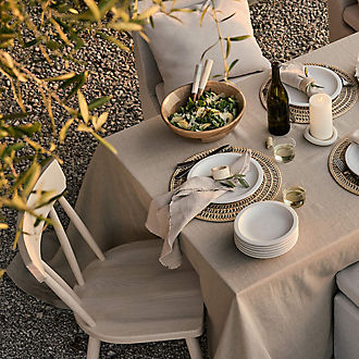 Whether preparing for an elaborate dinner party or a quick morning breakfast, set a stylish table with blue placemats. Not only do they protect your tabletop and tablecloth from crumbs and accidental spills at mealtime, blue table mats provide an easy way switch up the look of your tablescape by adding color and dimension. During the summer, consider aqua or light blue placemats paired with coastal decor for a beachy feel, then swap your look for a richer, more subdued one with navy blue placemats and metallic accents in the winter months. Looking for a style that works all year round? Blue and white placemats complement a variety of styles, from modern to traditional. For circular dining tables, elegant round placemats mirror the shape of the table beautifully. Look for placemats with texture and shine for a sophisticated look, or use a simple linen material for casual meals. When it comes to choosing a shape for your blue placemats, simply mirror the shape of your dining table; rectangular options work well with the clean lines of square or rectangular tables, while round blue placemats bolster the soft effect of circular kitchen or dinner tables. Complete your tableware with dinner plates, glasses and silverware in contemporary patterns and colors.