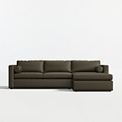 Aris makes modern design soft, cozy and indulgent, upholstered in top-grain leather with rich color and buttery softness. Destined to be everyone's favorite spot to chill, the clean-lined sectional sofa features track arms and a broad deck with plush seat and back cushions that invite the gang to get comfortable. A couple of bolster pillows aid in getting the snuggle just right.