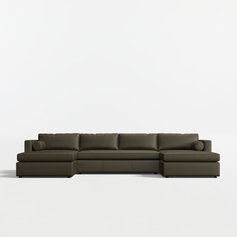 • View Aris 3-Piece U-Shaped Leather Bench Sectional Sofa with Double Chaise Lounge - image 2 of 9