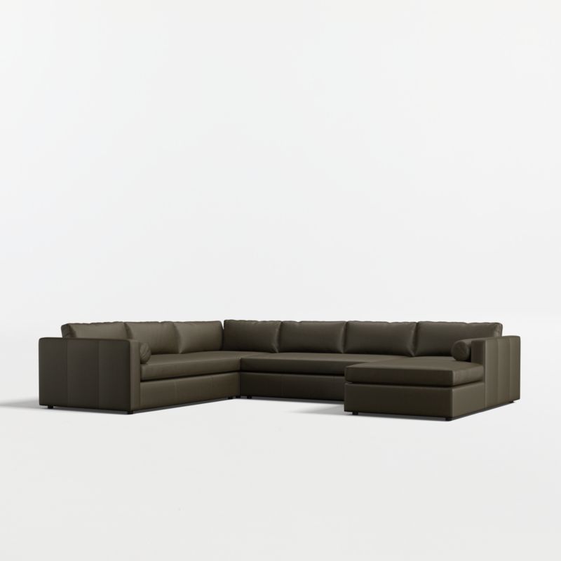 Aris Deep 4-Piece L-Shaped Leather Bench Sectional Sofa with Chaise Lounge