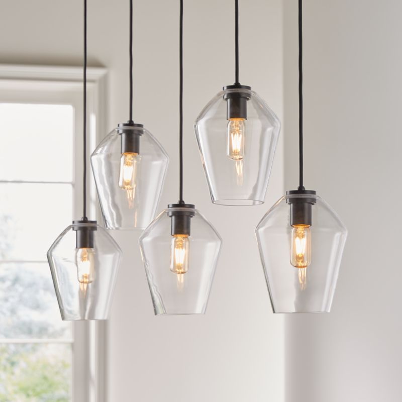 Arren Black 5-Light Linear Pendant with Angled Clear Glass Shades 40.8"