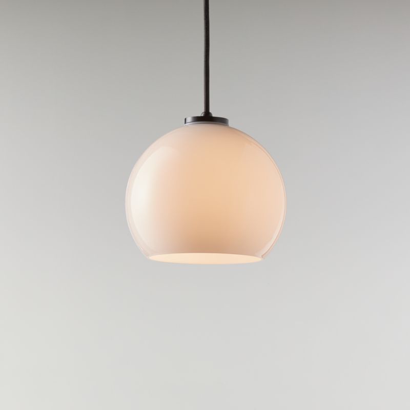 Arren Black Single Pendant Light with Milk Round Shade 8"