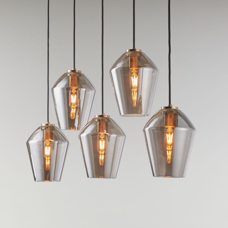 Arren Brass 5-Light Linear Pendant with Angled Silver Glass Shades 40.8"