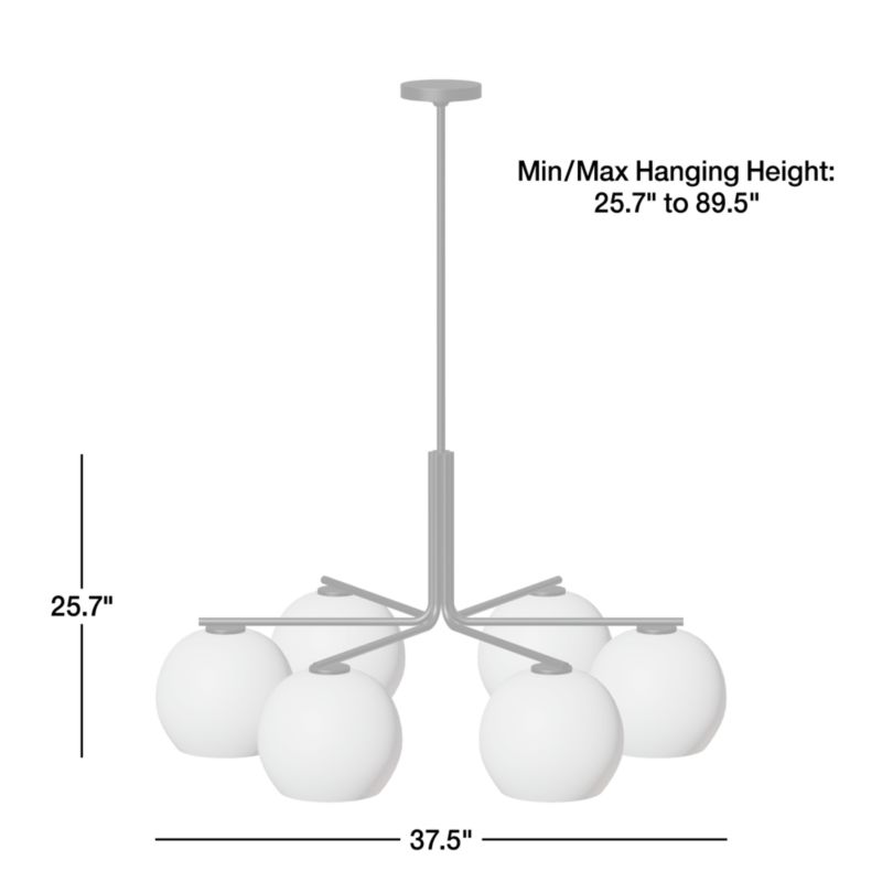 Arren suspends a sextet of bubble-like shades from an iron fixture finished in black. The round clear glass globes radiate around the center, supported by slender rods that curve gracefully. Boasting clean lines and classic proportions, the six-light chandelier offers a delightful presence-and plenty of light-in an entryway, above a dining table or at the top and bottom of a stairway. Full of flexible lighting options with a custom feel, our modern-yet-timeless Arren lighting collection combines chandeliers, pendants, sconces and lamps in a variety of configurations and finishes with elegant glass shades available in four shapes and three finishes.