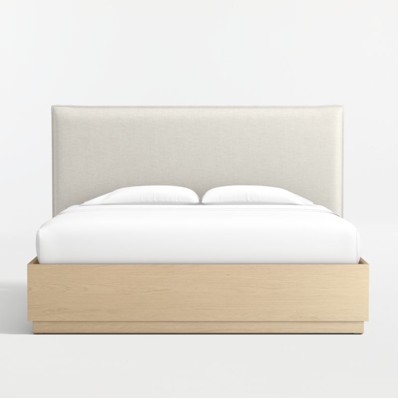 Our custom bed collection lets you mix and match our top-selling headboards and bases for a look that's truly yours. Our coastal-cool Arvada headboard offers pillow-like comfort and the casual look of a relaxed flange border. The Batten bed base complements Arvada's clean-yet-relaxed silhouette with a sleek plinth design and the lively grain of oak veneer enhanced with a white oak finish. A great choice for storage-challenged bedrooms, the base seamlessly integrates a drawer at the foot of the bed for placing bedding, blankets and off-season garments.