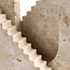 Inspired by fantastical spaces and stories, our stairways to nowhere encourage flights of fancy. This beige marble sculpture pairs two opposing staircases, one glimpsed in shadow through an airy window. Hand-carved by skilled artisans, the piece reminds us of a medieval castle or stone stairs cut into a cliffside leading down to a beach. This sculpture has a classical-yet-surreal presence on a bookshelf or mantel, especially paired with our other marble stairways.