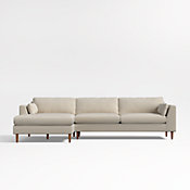 Just updated! Our better-than-ever Avondale sectional brings clean, sophisticated style and easy comfort to your living space. The combination of a left-arm sofa and right-arm chaise sits medium to medium-firm with seat cushions boosted with plush feather-down to reduce pressure points and maximize comfort. Back pillows, also enhanced with feather-down, ride a little higher against a lowered back to support with sink-in softness. Arm pillows scale up with neat knife-edge tailoring to casually tuck between the frame and seats. We especially love the two-piece sectional upholstered in texture-rich Pebble, a slubby weave with subtle color variations.