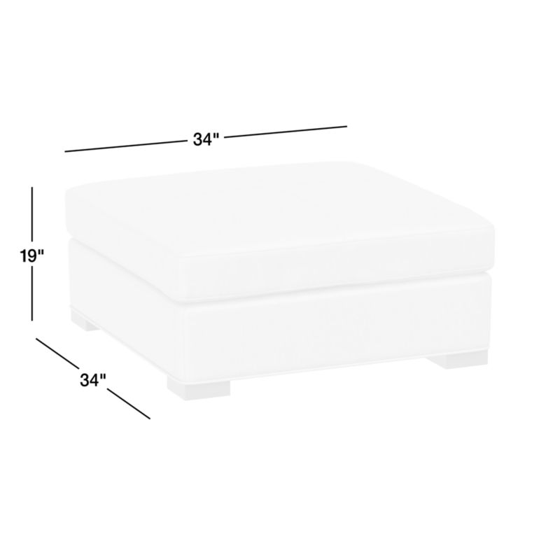 Axis Classic 34" Leather Square Cocktail Ottoman19"Hheight34"Wwidth34"DdepthMeasurements are in inches.48.26Hheight86.36Wwidth86.36DdepthcmMeasurements are in centimeters.
