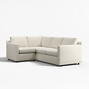 Barrett makes modern sectional seating affordable and carefree. Composed of a left-arm corner sofa and right-arm chair, the two-piece sectional offers comfy seat and back cushions on a trim frame with track arms and a low-rise back. Upright yet relaxing, this versatile sectional is designed to keep its look casual and clean, even in high-traffic family rooms. The Barrett II 2-piece sectional is a Crate & Barrel exclusive.