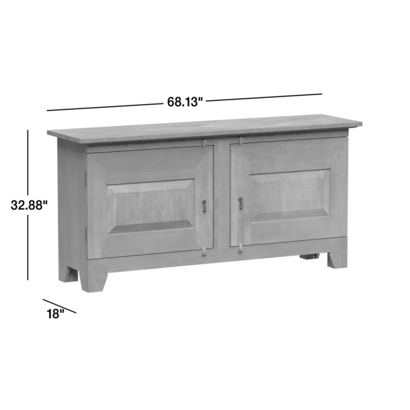Bold in proportion and simple in design, the beauty of this credenza lies in the mango wood's active open grain and naturally occurring knots that make each piece unique. Raised panels with beveled edges add character to a pair of doors, which when opened, reveal two fixed shelves. The Basque light brown credenza is a Crate and Barrel exclusive.