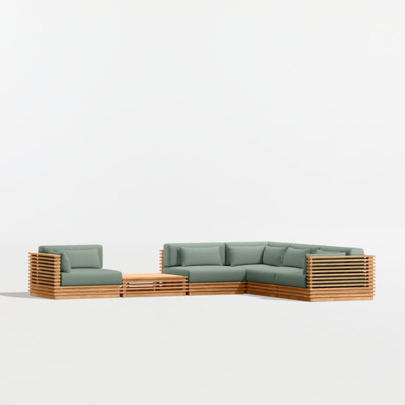 • View Batten Natural Teak 6-Piece L-Shaped Outdoor Sectional Sofa with Side Coffee Table & Canvas Spa Sunbrella ® Cushions - image 10 of 13