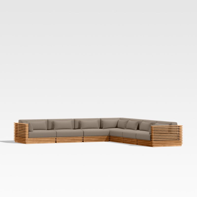 Batten Natural Teak 7-Piece L-Shaped Outdoor Sectional Sofa with Cast Shale Brown Sunbrella ® Cushions