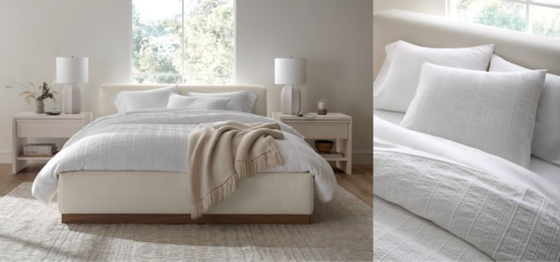 Get the feeling of sun-bleached linens and seasidebreezes in your bedroom with a textured mix in white.