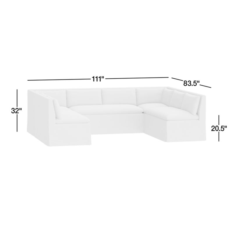Belmar Grey Slipcovered U-Shaped Loveseat Dining Banquette32"Hheight111"Wwidth83.5"DdepthMeasurements are in inches.81.28Hheight281.94Wwidth212.09DdepthcmMeasurements are in centimeters.