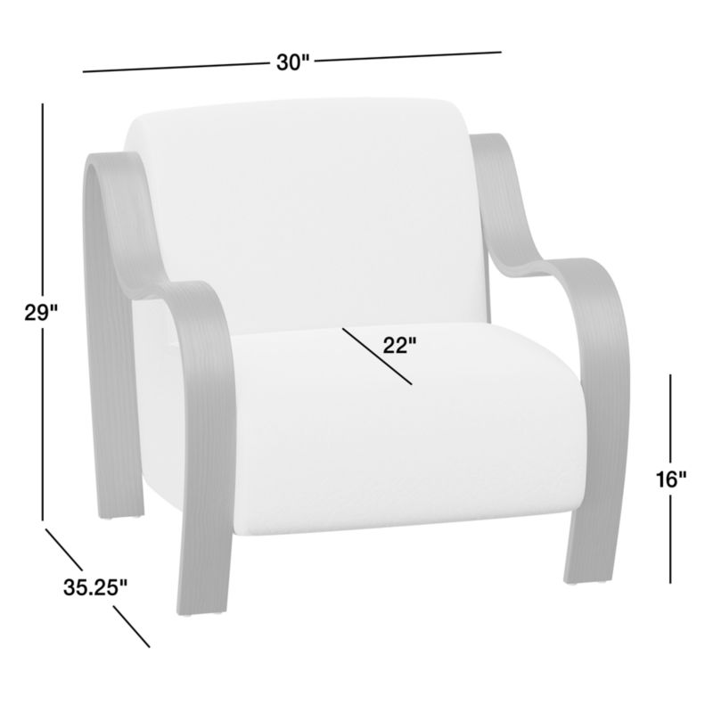 Named after the French word for "kiss," our Bisou chair is a loving tribute to both vintage and contemporary European style. Bentwood ash veneer finished in a warm honey tone curves the striking, heart-shaped arms. Set within the embrace of the playful frame, a sculptural cushion shapes the super-comfortable all-in-one seat and back. The off-white, wool-blend fabric lends dimension and touch-me texture. Bisou's bold silhouette belies its petite scale, making the accent chair easy to use in pairs.