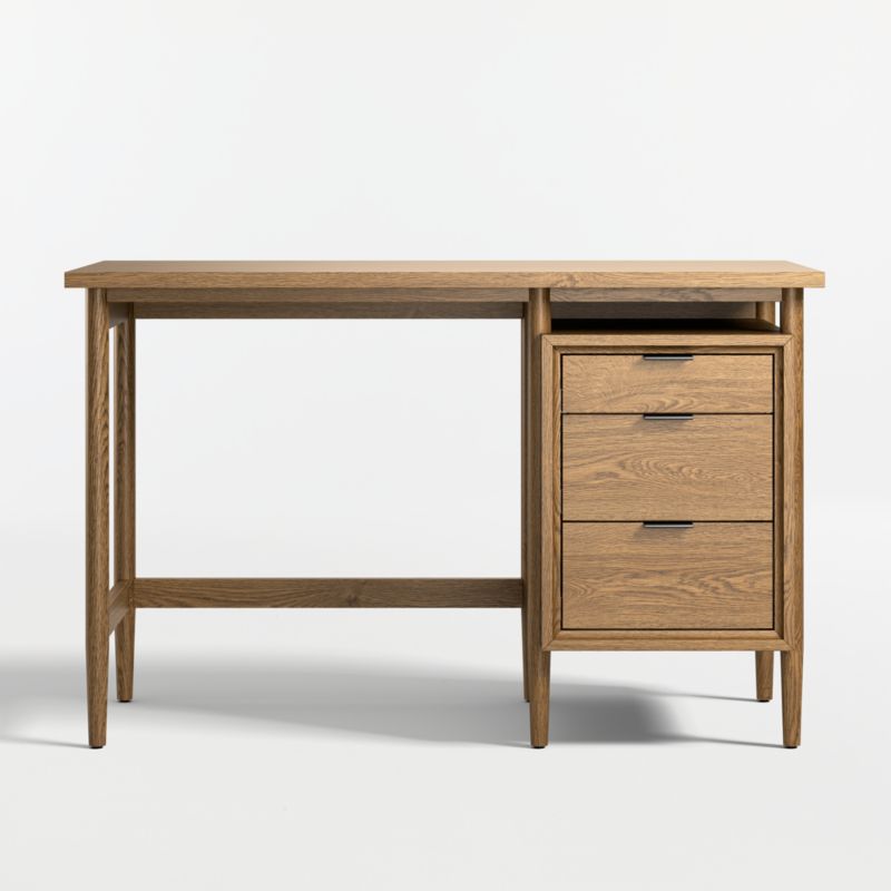 With its clean, simple lines, our Bodie desk is a timeless kids' furniture design that's totally comfortable in modern homes. This durable study essential includes an open cubby compartment for storing a laptop or notebooks, plus 3 drawers so there's plenty of room for books and supplies. The desk's gorgeous wood grain lends a touch of warmth to a bedroom or playroom. Crafted to last and grow with families, it's the perfect companion piece to the rest of our Bodie collection.