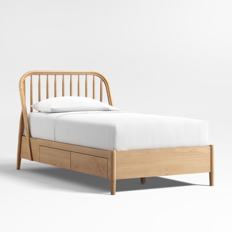 Bodie Natural Oak Wood Spindle Kids Twin Storage Bed