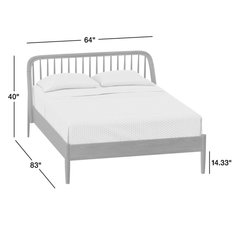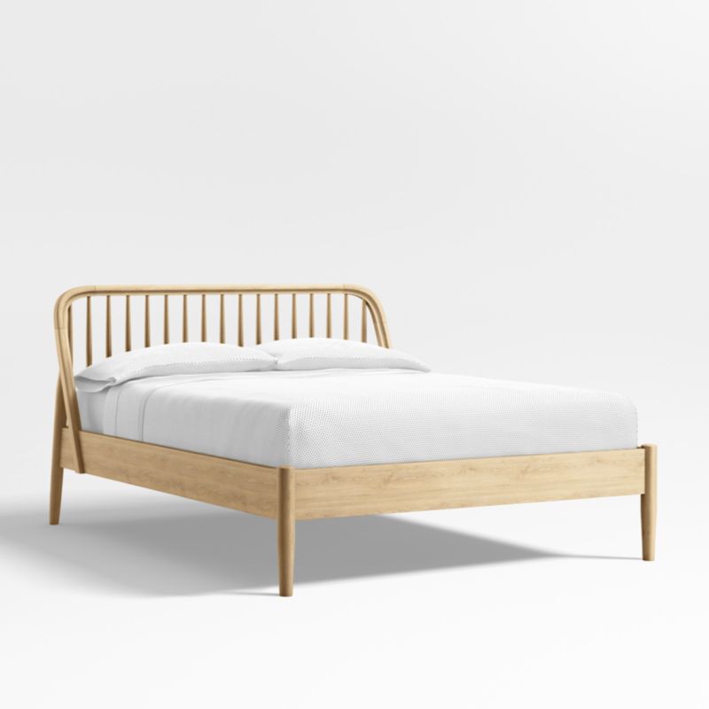 Our Bodie oak spindle bed is timeless kids furniture with a right-now twist. From the subtle curves of the headboard to the slightly angled back legs, this design gives classic spindle bed styling a modern update. Crafted to last through the years and grow with your family, it features solid poplar slats for support and durability. The queen bed's gorgeous natural grain will be perfectly at home in your kid's room, while a generously sized headboard gives little ones and grownups enough room for story time.