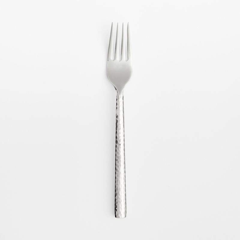 Our Boulder flatware collection updates the classic hammered finish with a contemporary new shape. This stainless steel dinner fork pairs a streamlined utensil head with a round, textured handle all polished to a mirror finish. Pair with the other pieces in our exclusive collection to set a modern table with plenty of shine.