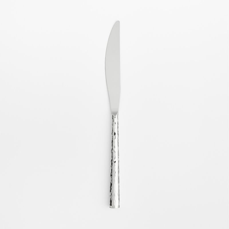 Our Boulder flatware collection updates the classic hammered finish with a contemporary new shape. This stainless steel dinner knife pairs a streamlined blade with a round, textured handle all polished to a mirror finish. Pair with the other pieces in our exclusive collection to set a modern table with plenty of shine.