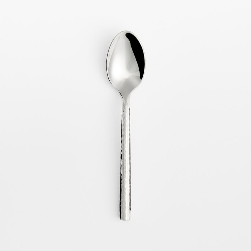 Our Boulder flatware collection updates the classic hammered finish with a contemporary new shape. This stainless steel teaspoon pairs a streamlined utensil head with a round, textured handle all polished to a mirror finish. Pair with the other pieces in our exclusive collection to set a modern table with plenty of shine.