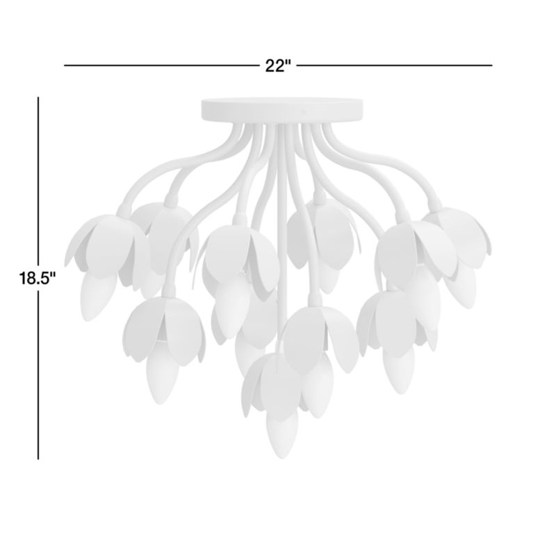 A whimsical arrangement of blossoms form a luminous bouquet on our metal flush mount ceiling light, finished in an earthy sage green. Its soft illumination and floral design create an inviting and cozy atmosphere, making it a delightful grow-with-them centerpiece for a kid's bedroom, nursery or playroom.