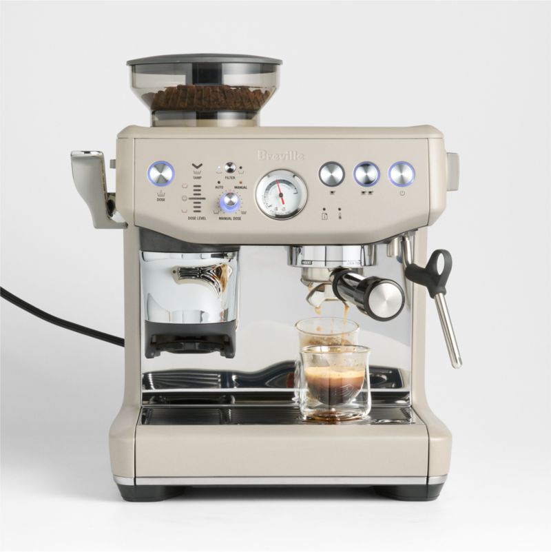 This espresso machine takes you from whole bean to impeccable espresso in less than one minute. The built-in conical burr grinder doses just the right amount of grounds and offers 25 grind settings. The ingenious Puck System assists with tamping, applying precise pressure to your coffee grounds and finishing with a twist to create a perfectly polished, barista-worthy puck. Water heated exactly to the optimal temperature maximizes flavor extraction for balanced flavor. To top your drink with velvety microfoam, use the milk wand that delivers powerful steam pressure.