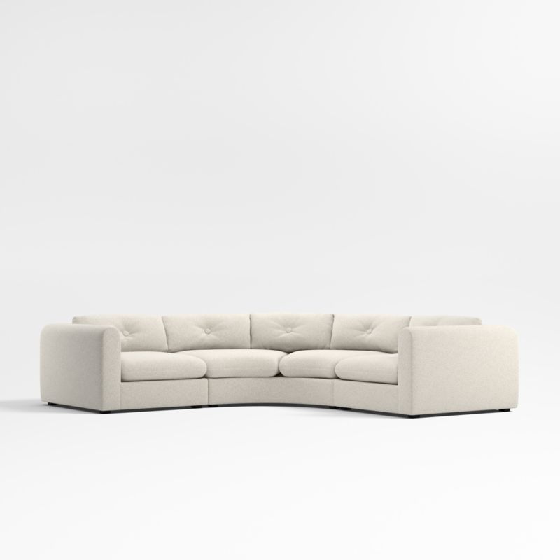 As cool and casual as its namesake Chicago neighborhood, our Bucktown sectional invites the whole family to curl up and snuggle in. Propped on a thick deck, the sectional sofa's rounded seat cushions sit deep, plush and loungey. Toss off the back pillows and it's deep enough to sleep an overnight guest. And because it's a Crate & Barrel exclusive, Bucktown delights with attention-getting design details such as oversized button tufting on the back pillows and the waterfall construction that grounds the modular sofa in contemporary curves. The three-piece sectional consists of a wedge chair and left- and right-arm chairs.