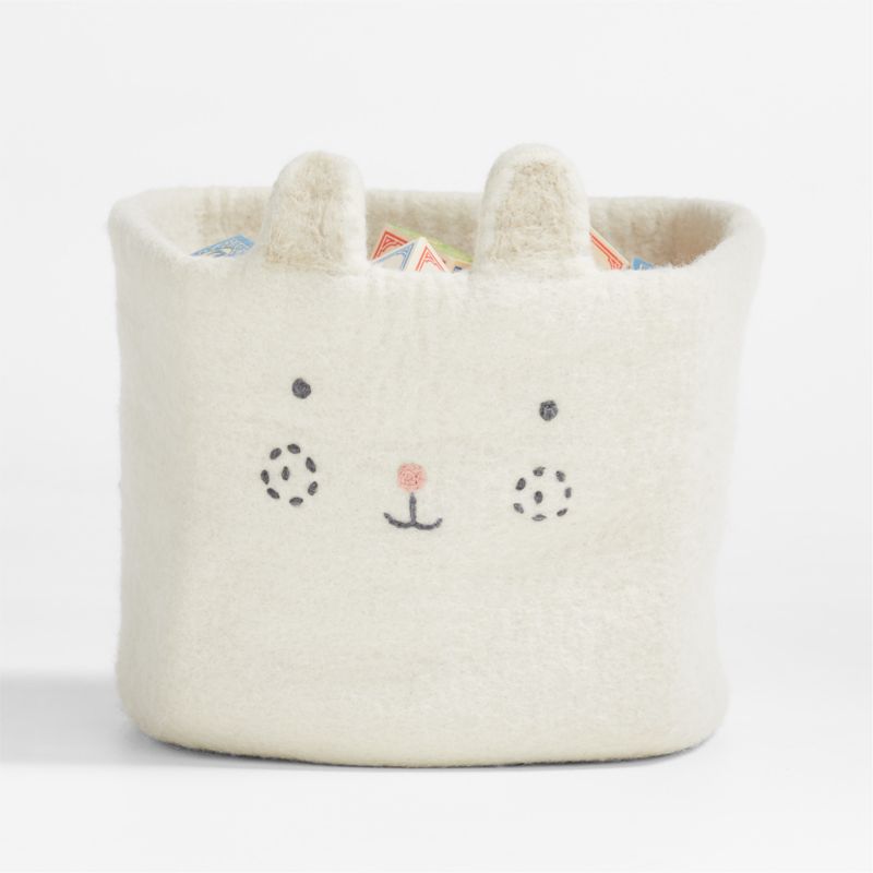 Just try to not be totally charmed by this adorable, bunny-shaped felt storage bin. The rabbit's embroidered face and fuzzy ears are cute as can be, and the natural color fits well in any nursery or kids' playroom. When it's cleanup time, toys and books will practically hop right in.