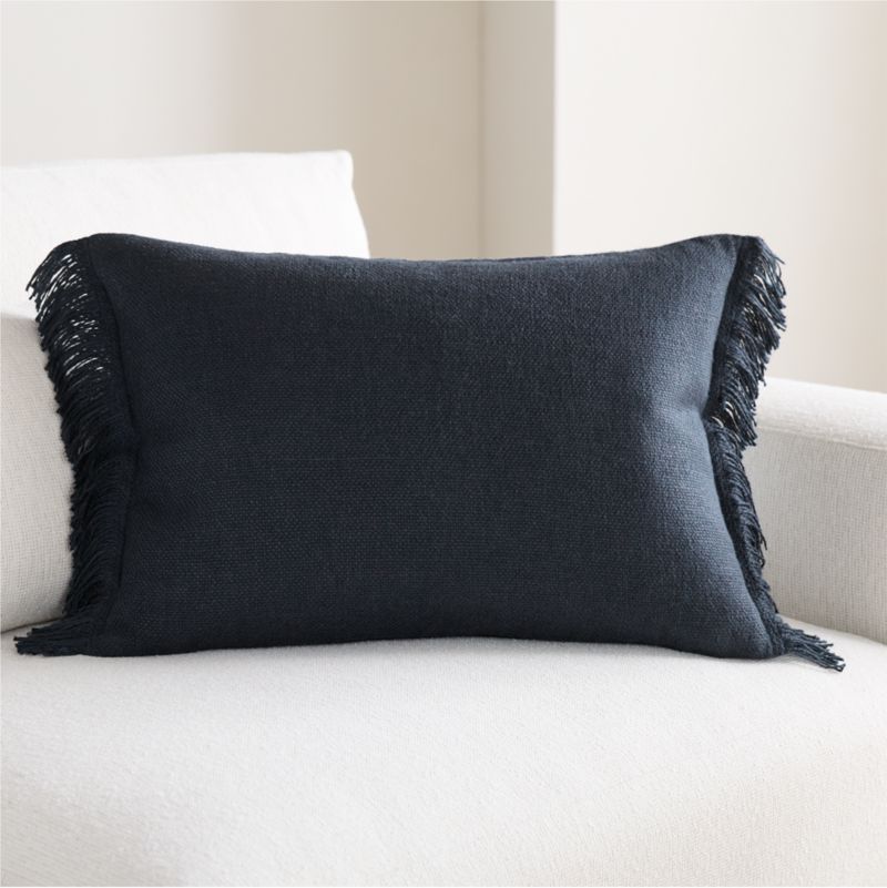 An irresistibly soft and slubby weave gives this throw pillow a relaxed look and feel that you'll want to snuggle up with every day. The inclusion of silky viscose adds a sophisticated sheen to the organic beauty of sustainably sourced linen fibers. Yarn-dyed deep indigo, the fringed pillow looks chic and casual tossed on a sofa, armchair or bed-especially paired with the coordinating throw blanket. Our blue lumbar pillow includes your choice of a plush feather-down or lofty down-alternative insert.