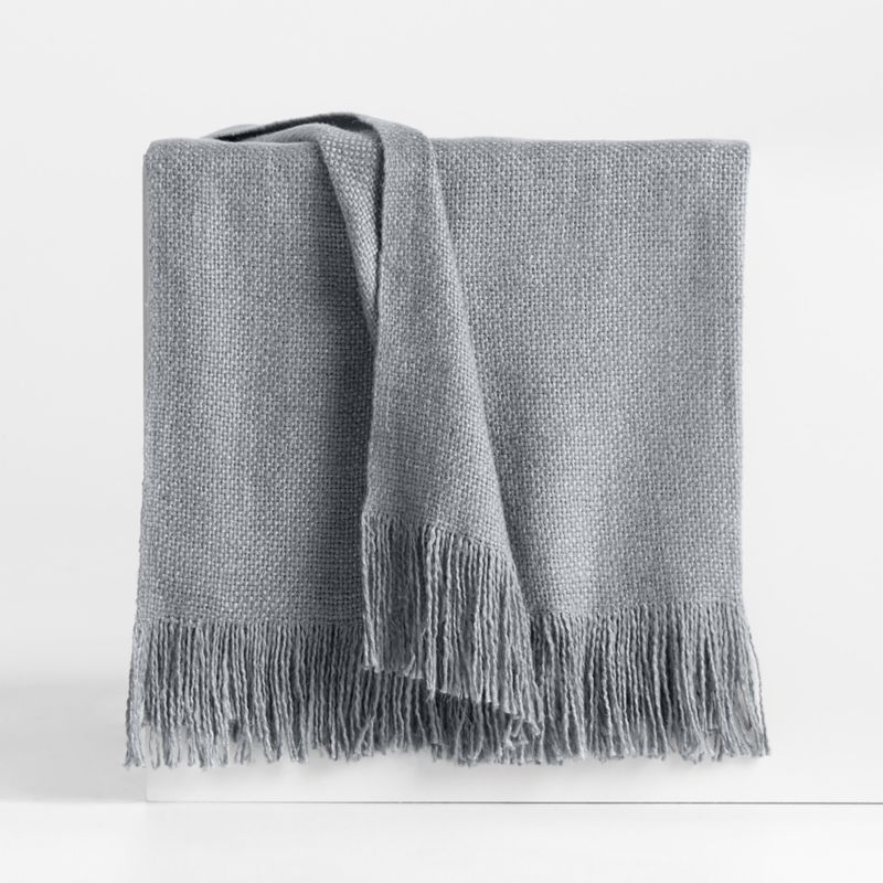 An irresistibly soft and slubby weave gives this throw blanket a relaxed look and feel that you'll want to snuggle up with every day. The inclusion of silky viscose adds a sophisticated sheen to the organic beauty of sustainably sourced linen fibers. Yarn-dyed smoky blue, the fringed throw blanket looks classic and casual draped over a sofa or bed—especially when paired with the matching throw pillow.